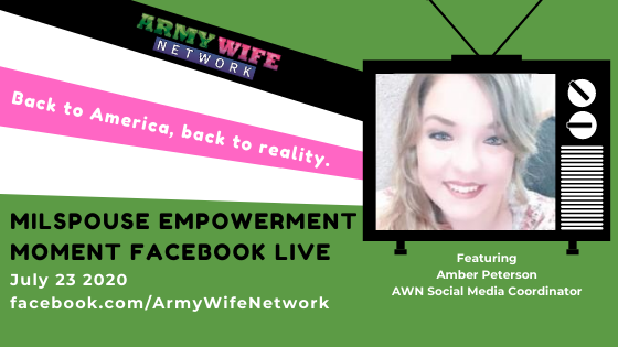 Join Amber as she hosts this week’s Milspouse Empowerment Moment, “Back to America, Back to Reality”.