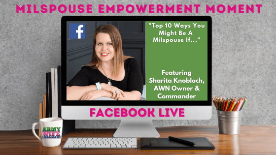 MilSpouse life is sometimes really serious and sometimes we need to lighten up and laugh a little bit. Tune into some humor with Sharita Knobloch’s Top 10 Ways you might be a milspouse if…
