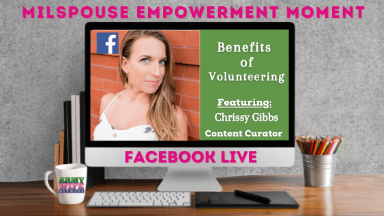 Another Thursday, another great episode of Milspouse Empowerment Moment. This week, Chrissy explains why volunteering is so great. Gandhi once said, “the best way to find yourself is to lose yourself in the service of others”. Chrissy discusses the benefits of volunteering that you receive.